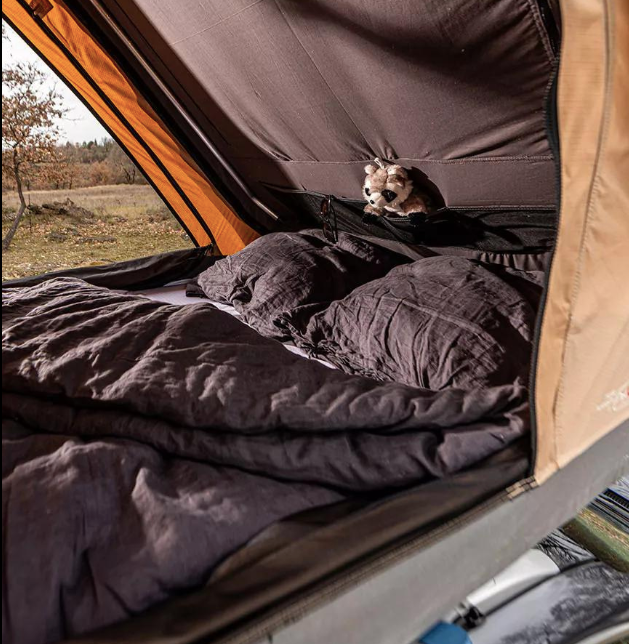 Une fois ouverte, elle offre un espace de couchage généreux d’environ 120 × 210 cm, adapté à deux adultes. L’intérieur est bien ventilé grâce aux 3 portes avec moustiquaires, favorisant une bonne circulation d’air et un environnement agréable même lors de nuits chaudes.