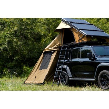 La tente de toit Swisskings Taiga Pro propose une expérience de camping outdoor complète avec des caractéristiques pensées pour le confort et la durabilité. La base en aluminium nid d’abeille assure une structure stable capable de résister à des contraintes mécaniques, tandis que la toile respirante certifiée réduit l’humidité et améliore l’aération.